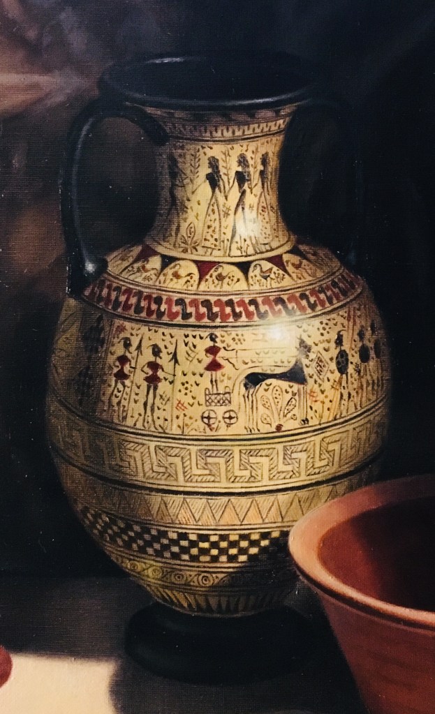 On the vase, I added black outlines to the triangular designs at the top, and corrected some wobbly lines all over. The original vase and mine (mine is obviously a reproduction!), was painted by hand, so the patterns aren’t perfectly even, so I don’t have to be too perfect.