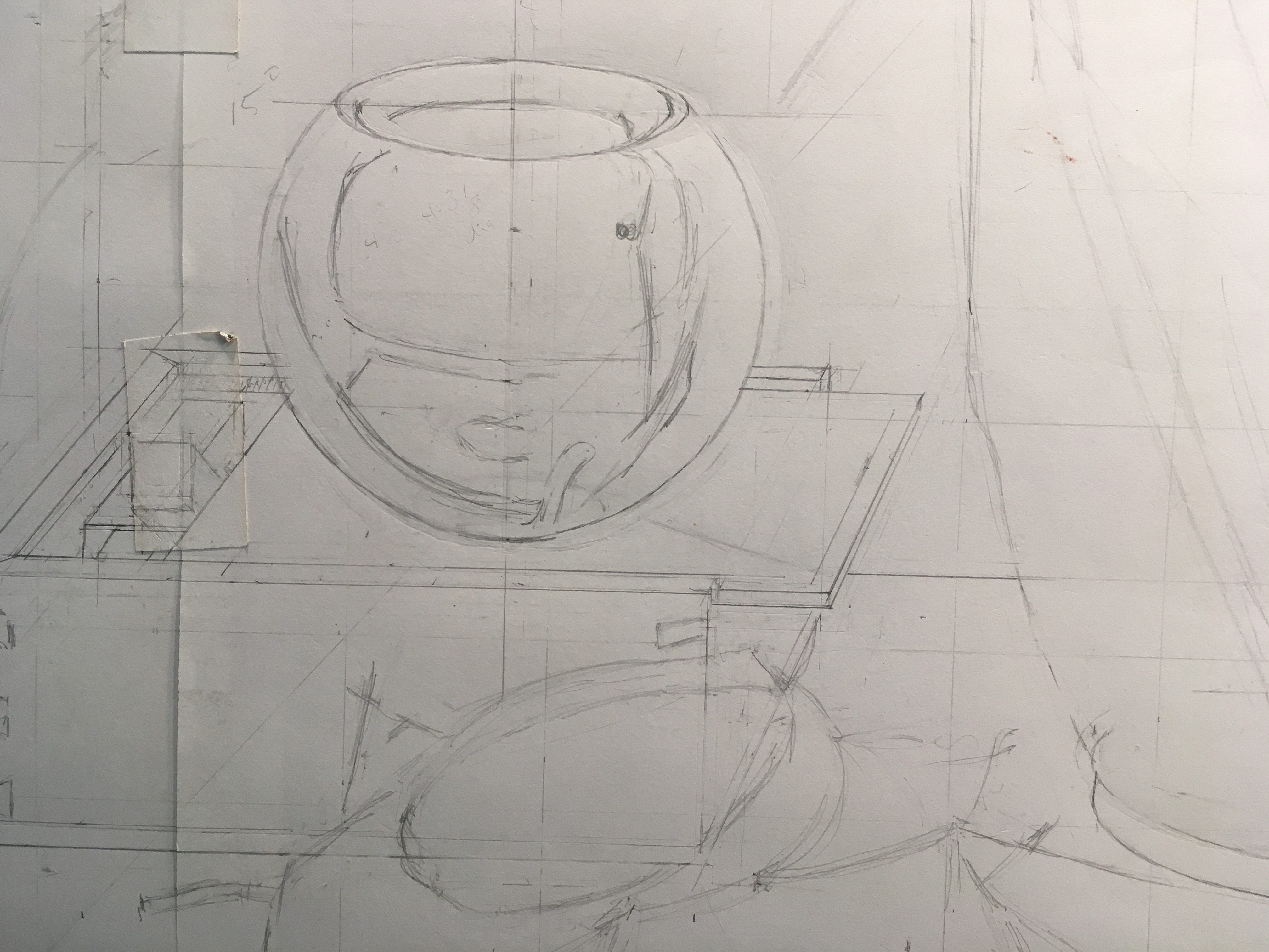 I drew some of the reflections and patterns on the bowl, but reflections can be tricky to see, and I usually end up re-seeing and drawing these as I paint.