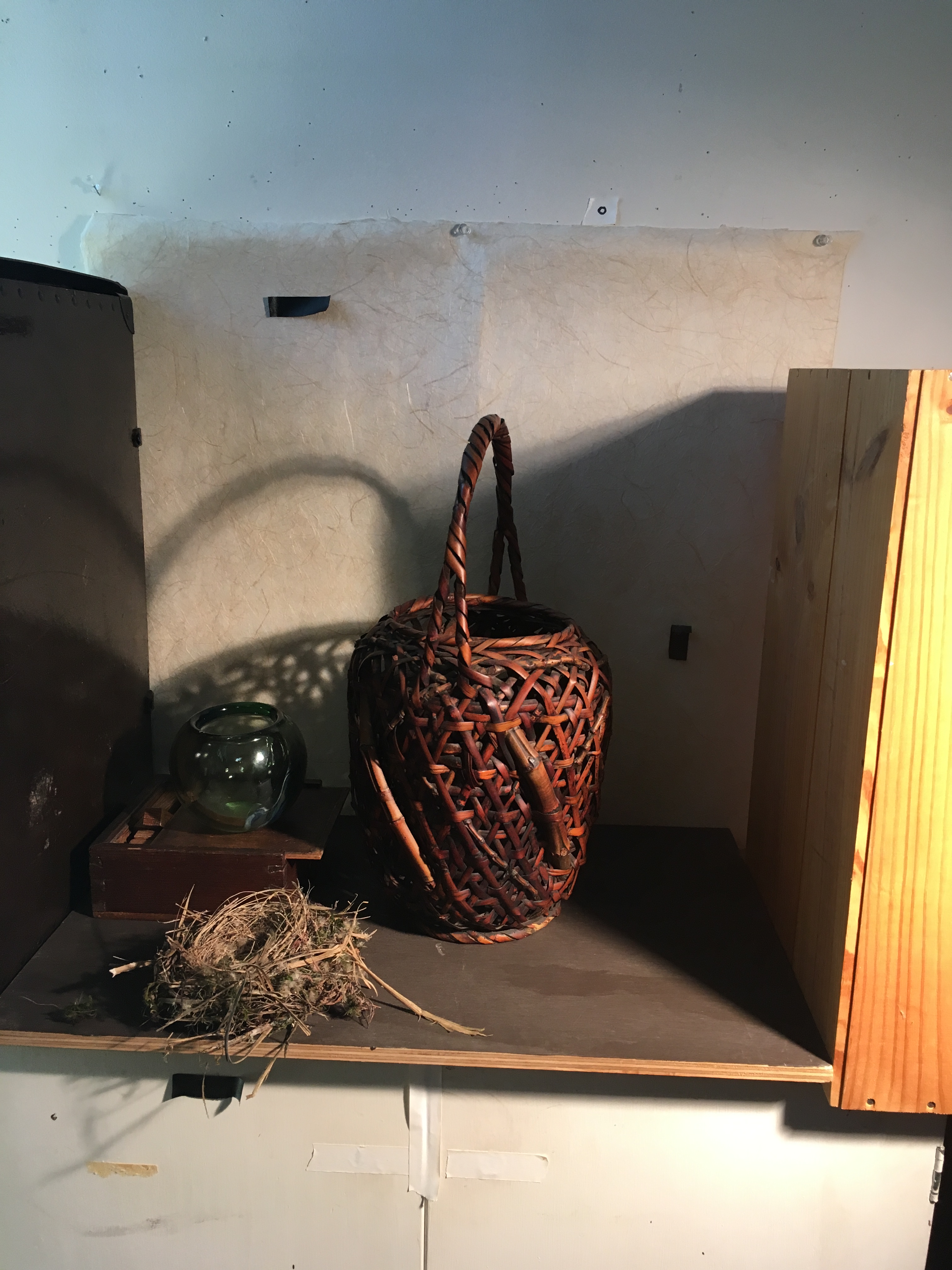 I was struggling trying to get the correct shapes of the handles. I was more successful after I stopped trying to make them perfectly symmetrical. The basket is wonderfully irregular! Also, the proportions of the body of the basket continued to look wrong to me. My measuring methods were not agreeing with each other. Sometimes that happens, and I have no idea why. Finally, I had to go with what my eyes were seeing!