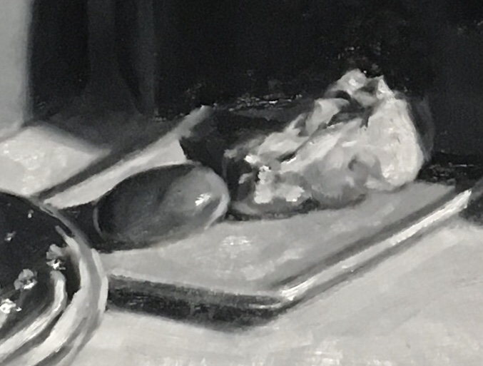 Above is my black and white study. This was a very quick and loose rendition done in oil on tracing paper. I did this to better judge the composition as well as to serve as a value guide when I started to paint.