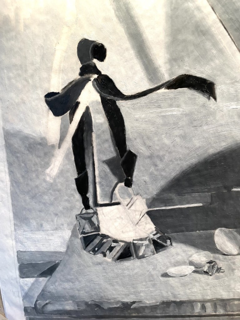 After getting most of the paper covered, above, I took a break. When the paint is wet, it’s hard to get crisp touches without everything blending together. After the paint is dry, in a week or so, I can start correcting the values.
